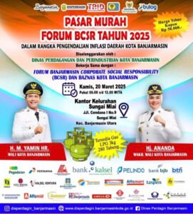 Wartalist.com – , Banjarmasin – Pemerintah Kota Banjarmasin melalui Dinas Perdagangan dan Perindustrian (Disperdagin) menggelar Pasar Murah Forum BCSR Tahun 2025 dalam upaya mengendalikan inflasi