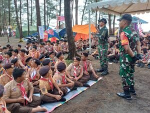 Wartalist.com – , Tanah Bumbu – Babinsa Koramil 1022-02/Kusan Hilir aktif memantau kegiatan perkemahan Jambore Pramuka yang digelar di Pantai Rindu Alam, Desa Betung, Kecamatan