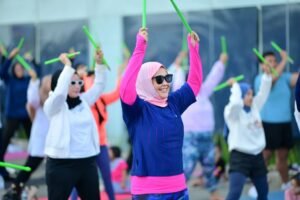 Wartalist.com – MAKASSAR – Ratusan perempuan dari berbagai generasi, termasuk milenial dan Gen Z, tumpah ruah untuk mengikuti olahraga poundfit bersama Fatmawati Rusdi, calon wakil