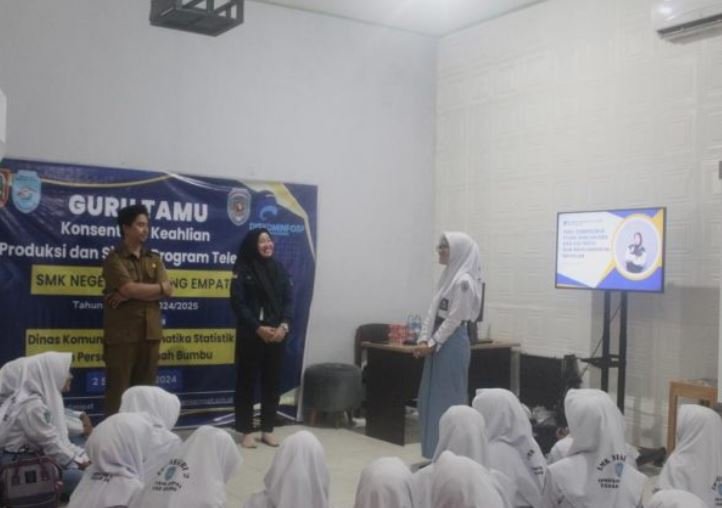 TANAH BUMBU – Dinas Komunikasi Informatika Statistik dan Persandian (Diskominfo SP) Tanah Bumbu mengadakan pembelajaran dasar tentang produksi dan siaran program televisi di SMKN 2 Simpang Empat.