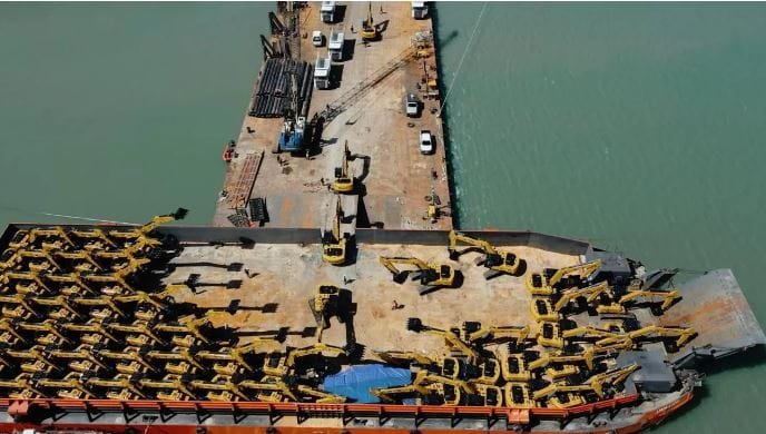 Ada 89 unit alat berat merek SANY berhasil disandarkan di Pelabuhan Wanam.