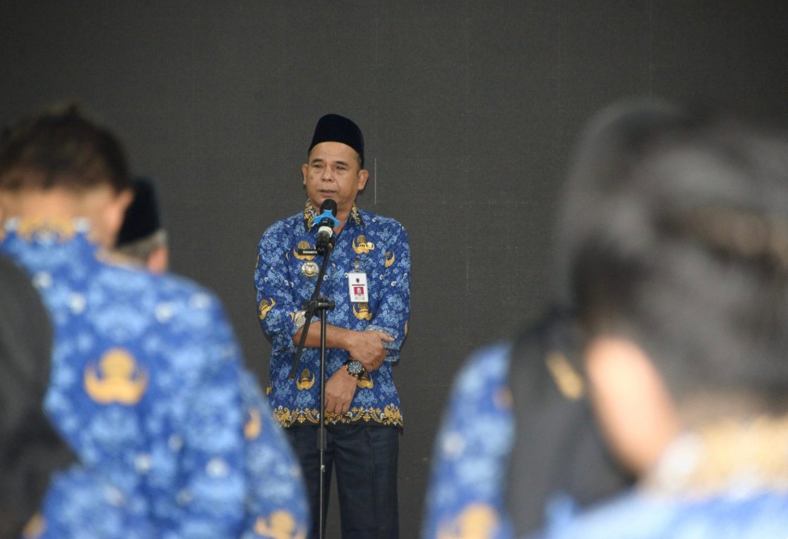 , Barito Kuala – Pj Bupati Barito Kuala, Dinansyah, memimpin apel terakhir di lingkungan Pemerintah Kabupaten (Pemkab) Barito Kuala di Aula Selidah Senin, 17 Februari 2025. Apel diikuti oleh pejabat eselon II, III, staf, dan ASN Pemkab Batola.