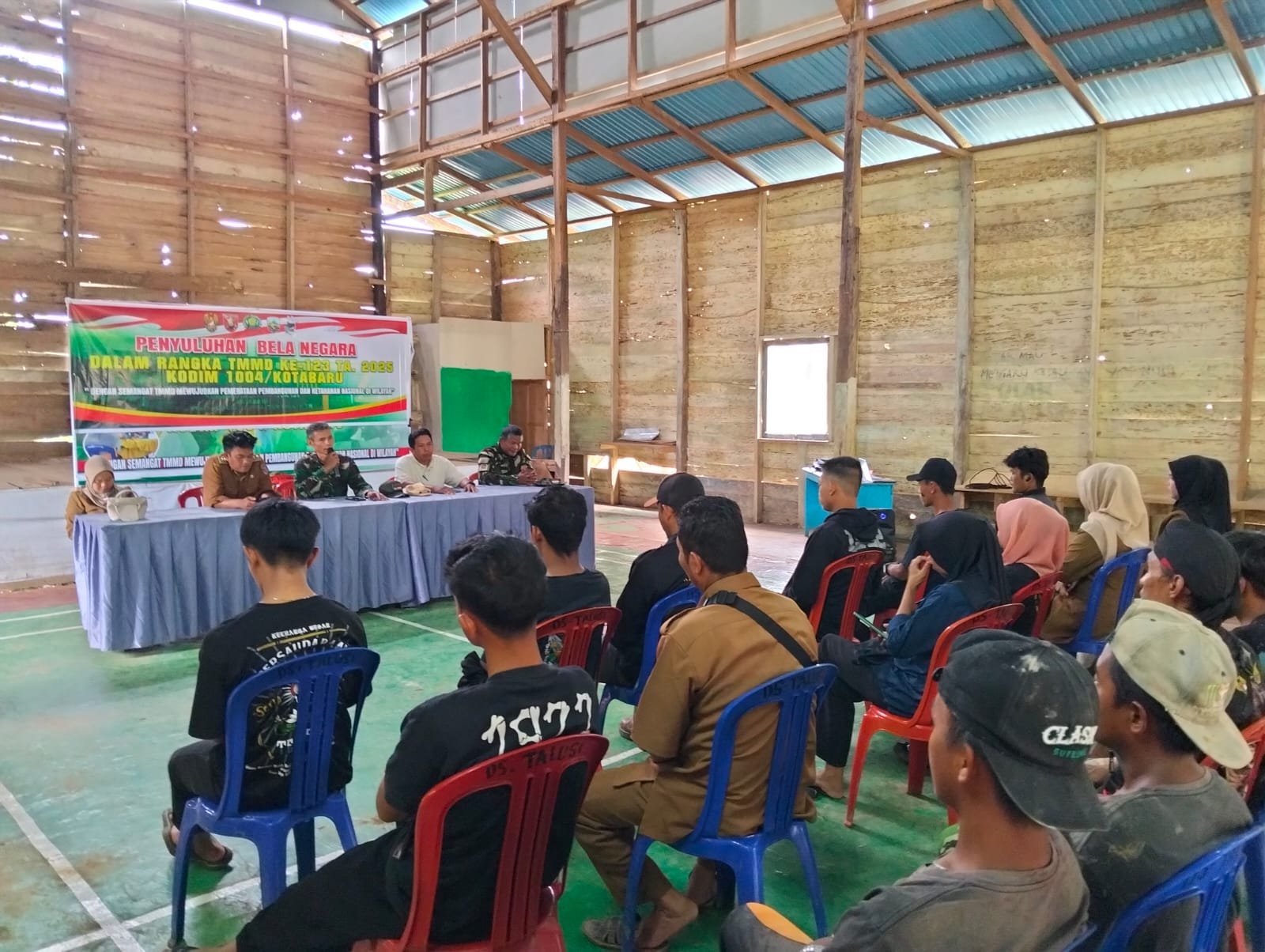 Satuan Tugas (Satgas) Tentara Manunggal Membangun Desa (TMMD) ke-123 Kodim 1004/Kotabaru menggelar sosialisasi bela negara bagi masyarakat Desa Talusi. Kegiatan ini bertujuan memperkuat rasa cinta tanah air, kesadaran berbangsa, serta memupuk semangat gotong royong dalam menjaga kedaulatan dan keutuhan Negara Kesatuan Republik Indonesia (NKRI).(18/3)