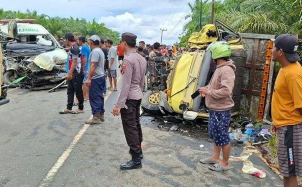Ambulans Ringsek Setelah Bertabrakan dengan Dump Truk di Tanah Bumbu