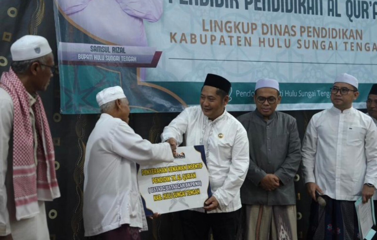 , Hulu Sungai Tengah – Bupati Hulu Sungai Tengah (HST), Samsul Rizal, menyerahkan insentif bagi guru TK/TPA dalam acara yang digelar di Rumah Dinas Bupati HST, Senin (17/3/2025). Dalam kesempatan tersebut, ia menegaskan komitmennya untuk terus mendukung pendidikan Al-Qur’an sebagai bagian dari upaya mencetak generasi Qur’ani di daerahnya.