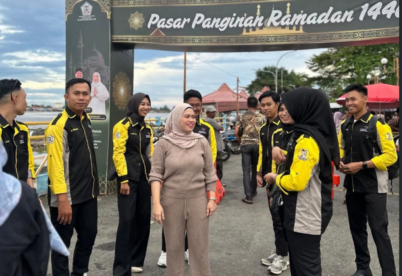 Dalam kunjungannya, ia bertemu dengan komunitas Atak Diang Putra Putri Batola dan memberikan apresiasi atas kegiatan yang dilakukan di Pasar Ramadhan.