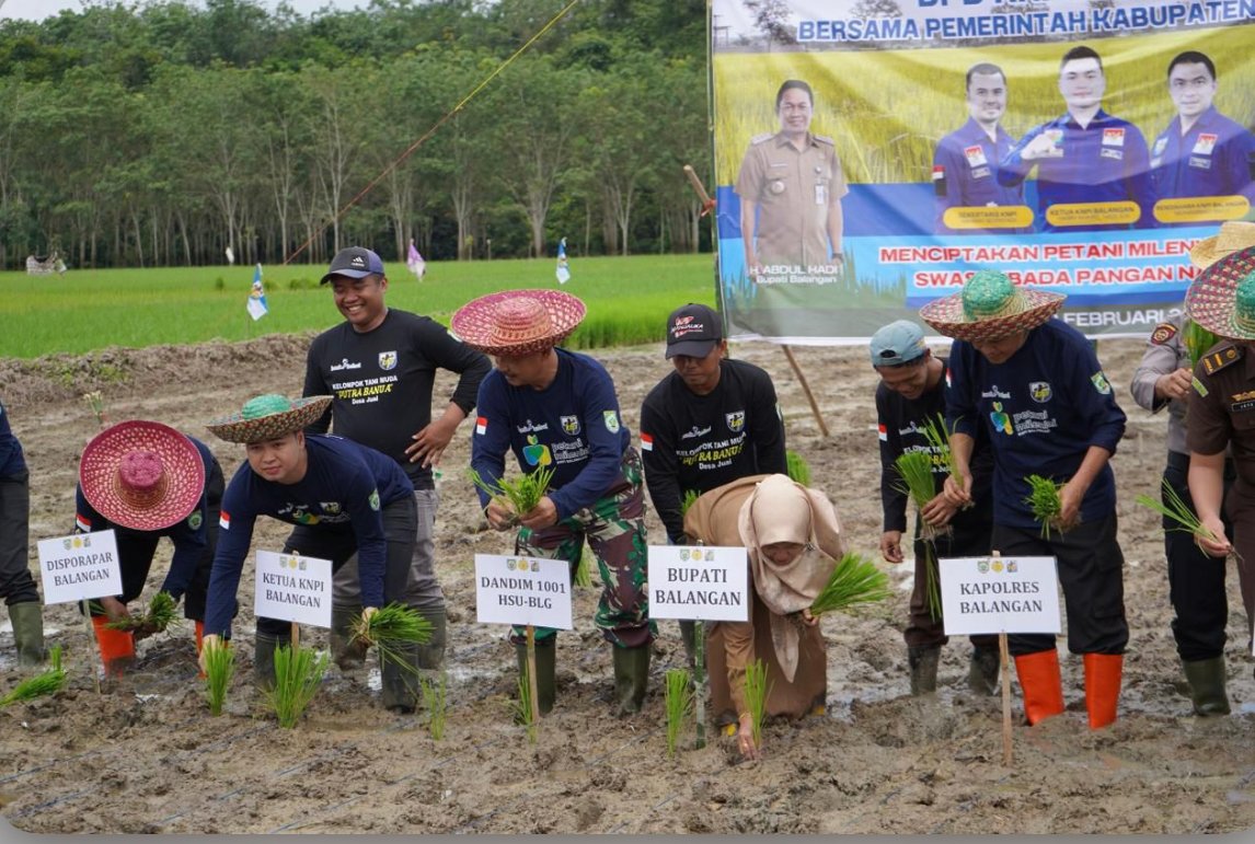 Kegiatan ini dipimpin langsung oleh Ketua KNPI Balangan, Harry Khairil Hadi, serta diikuti oleh jajaran Forum Komunikasi Pimpinan Daerah (Forkopimda) dan para petani milenial. Aksi ini menjadi bentuk nyata dukungan KNPI terhadap sektor pertanian yang merupakan tulang punggung perekonomian daerah.