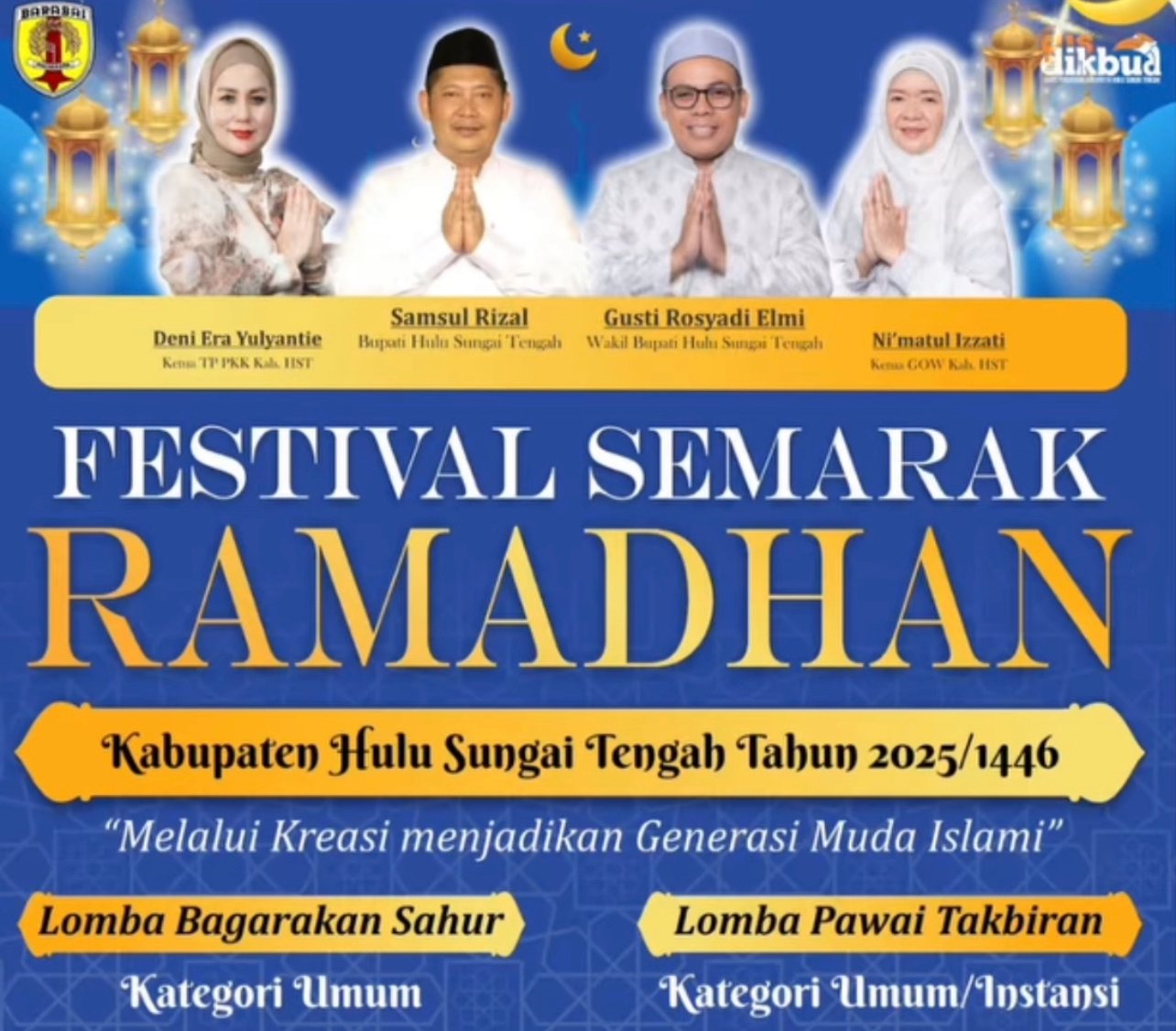 , Hulu Sungai Tengah – Pemerintah Kabupaten Hulu Sungai Tengah (HST) siap menggelar Festival Semarak Ramadan 2025/1446 H dengan tema “Melalui Kreasi Menjadikan Generasi Muda Islami”.