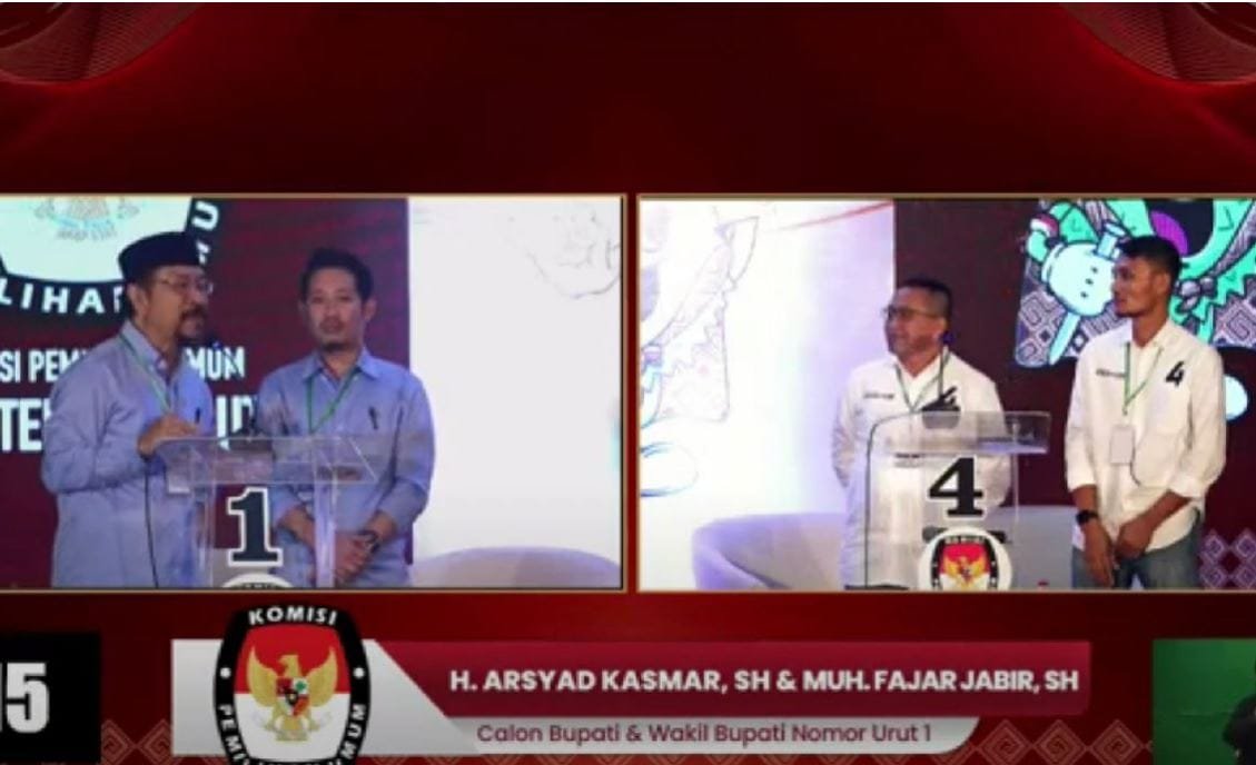 MAKASSAR – Debat Terbuka Pilkada Lutra yang diikuti empat pasangan calon berjalan seru. Khususnya pada sesi debat terbuka, saat Cabup 04 Muhammad Fauzi bertanya kepada Cabup 01 Haji Arsyad Kasmar.